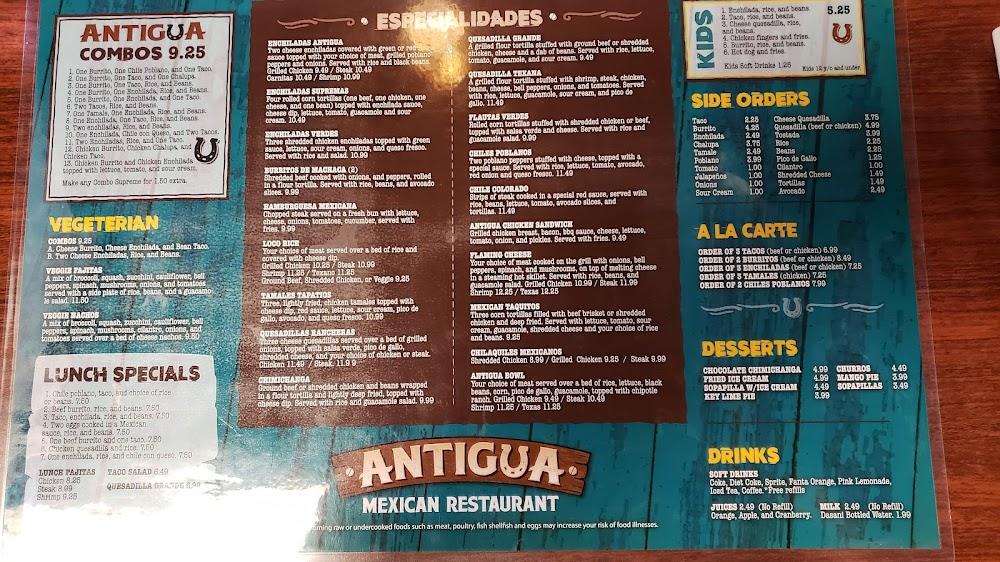 Antigua’s menu features a delightful array of traditional Mexican dishes. Flavor and authenticity take center stage here. Categories range from lunch specials to kid-friendly options. The Enchiladas Antigua and hearty burritos are certainly crowd-pleasers, showcasing a mix of meats and vibrant vegetables.
